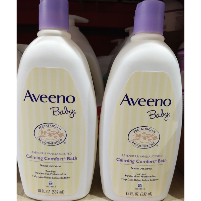Aveeno baby calming comfort bath 18 oz. Aveeno baby calming comfort bath contains scents of lavender and vanilla. See low price in cart. Dispense directly into bath water. Calming comfort® we use high quality, natural oats, and carefully harvest their protective, moisturizing and soothing properties.